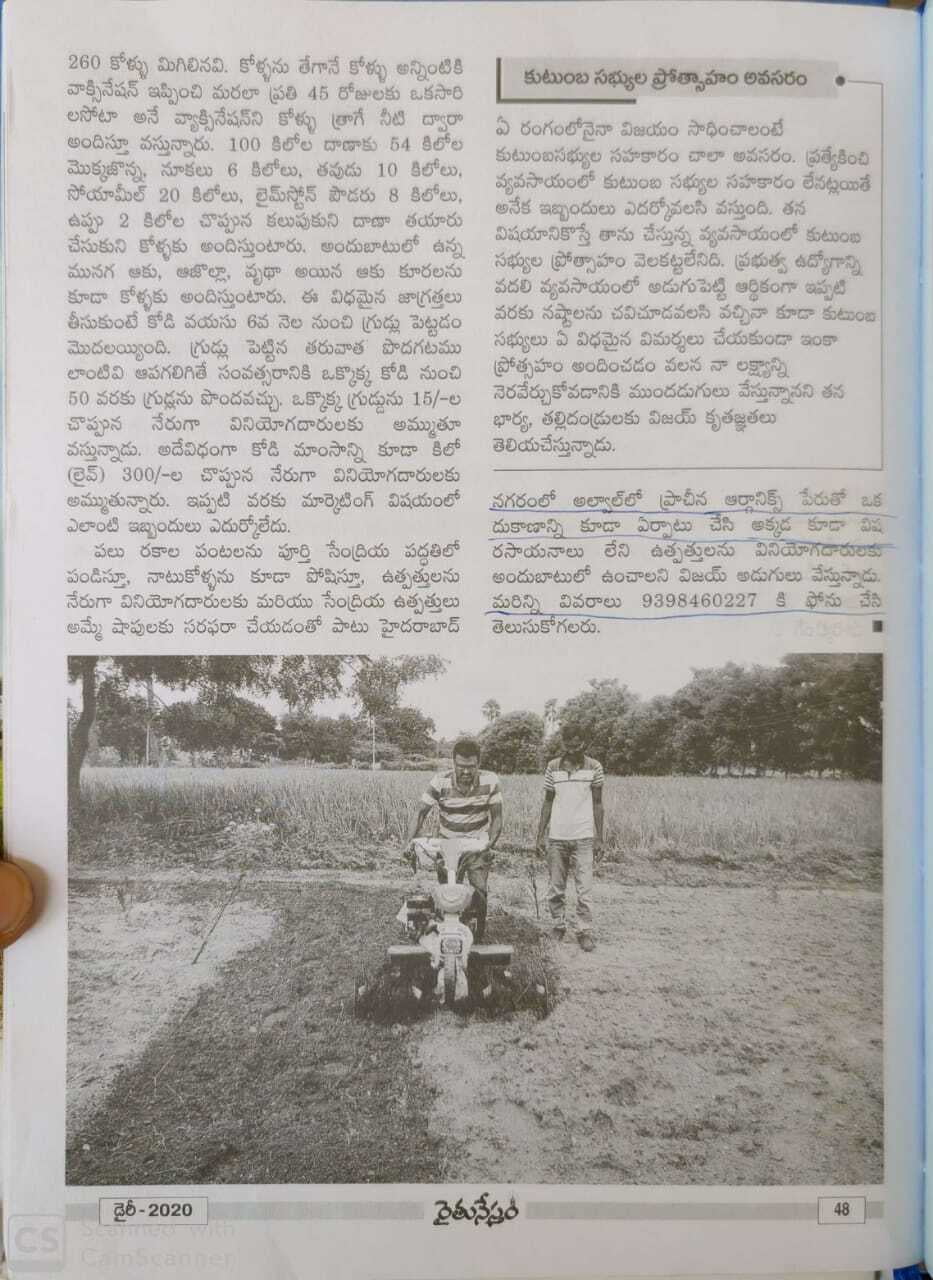 The same efforts have been put since 2015 in cultivating organic Veggies, Paddy & Raising Free range Country Hens & Home delivering. We will be ready to deliver all the above organic produce directly to your Homes.